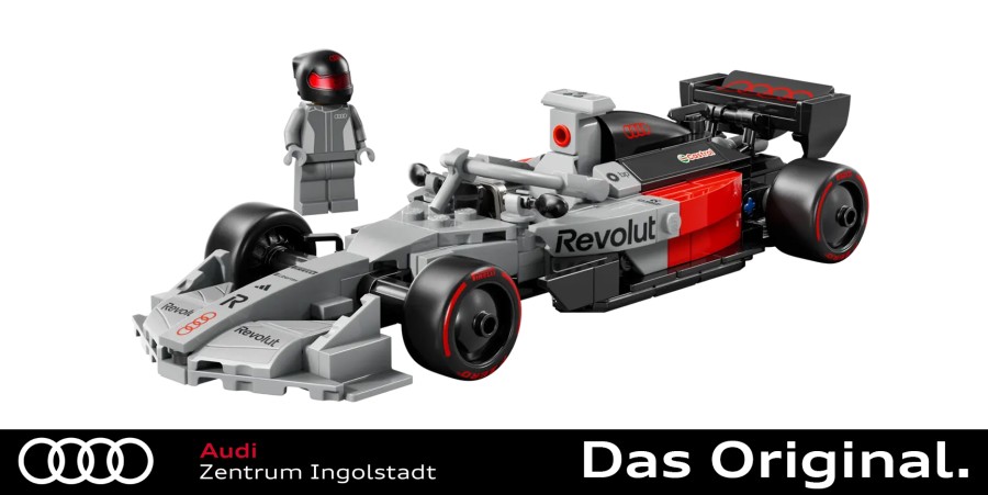 Der LEGO® Speed Champions Audi Revolut F1® Team R26 Rennwagen ist ein Spielzeugauto, das Fans ab 10 Jahren bauen, ausstellen und für spannende Formel 1® Action benutzen können