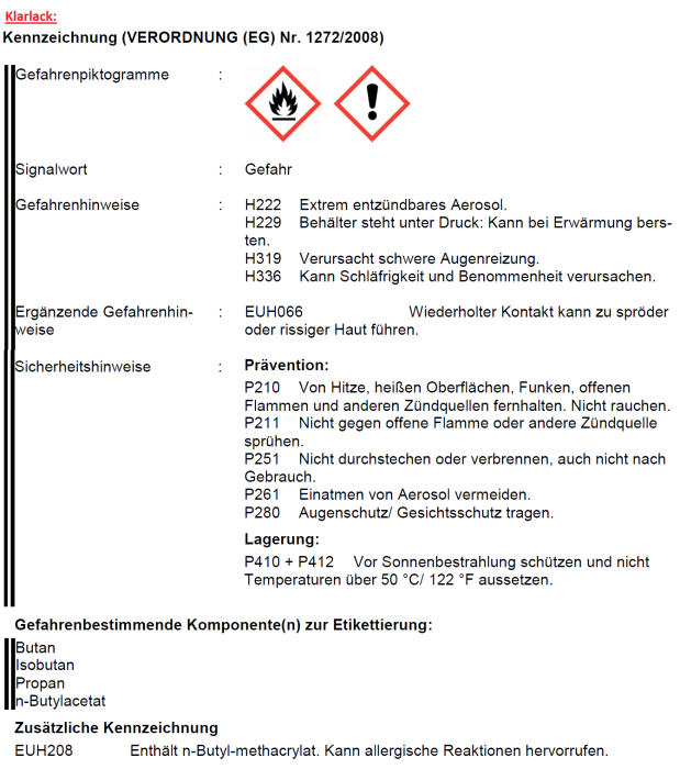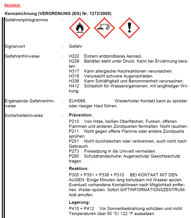 Erläuterungen der einzelnen Gefahren- und Sicherheitshinweise (H- und P-Sätze) wurden als Artikelbilder angefügt!